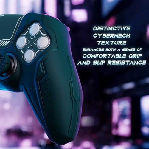 Elevate your gaming experience with the PlayVital Silicone Skin Set for PS5 Controller in Racing Green. Designed for ultimate protection and style, this full coverage case features a stunning futuristic CyberMech design that not only enhances the look of your controller but also provides a soft, comfortable grip for those long gaming sessions.