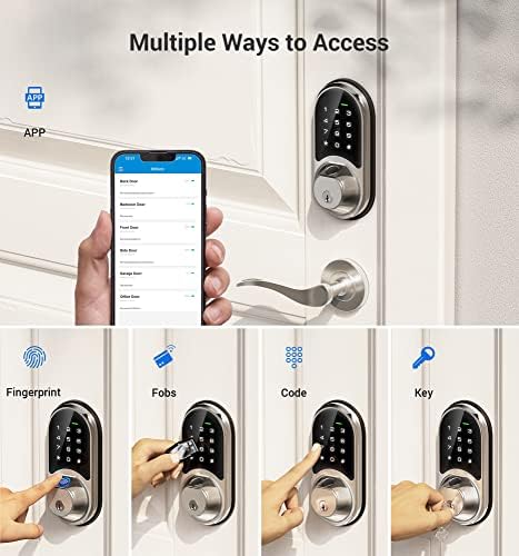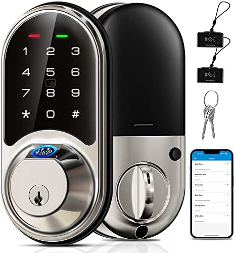 Veise RZ07 Fingerprint Smart Lock, 7-in-1 Smart Locks for Front Door, Keyless Entry Door Lock with App Control, Biometric Electronic Touchscreen Keypad Deadbolt, Satin Nickel